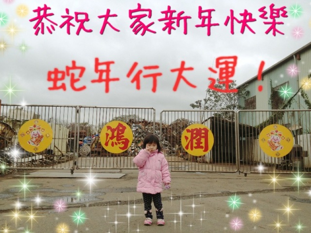 2013蛇年到!新年快樂! 新的一年到來,【鴻潤廢鐵廠】在此恭祝大家~ 一元複始、萬象更新、年年如意、歲歲平安、財源廣進、富貴吉祥、幸福安康、吉慶有餘、竹抱平安、五福滿門、喜氣洋洋。 新年快樂!蛇年行大運! 更多照片 → 按此